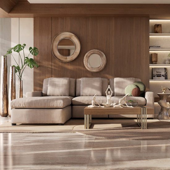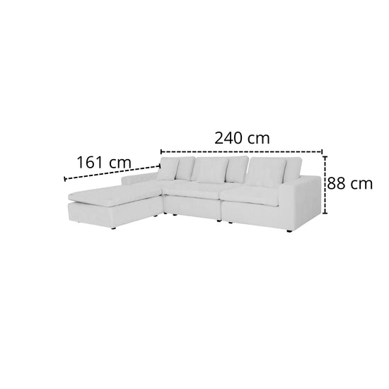 Dale a tu hogar un toque de sofisticación, comodidad y funcionalidad con este juego de sala. Su diseño modular permite adaptarla fácilmente a cualquier espacio, brindando una solución versátil y funcional, usa como safá en L o son sus módulos independientes.Tapizada en tela suave y resistente, con asientos acolchonados de máximo confort.