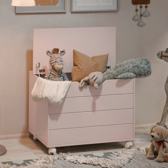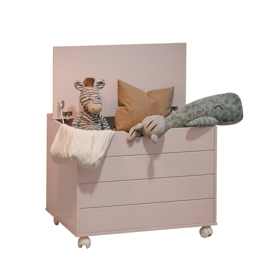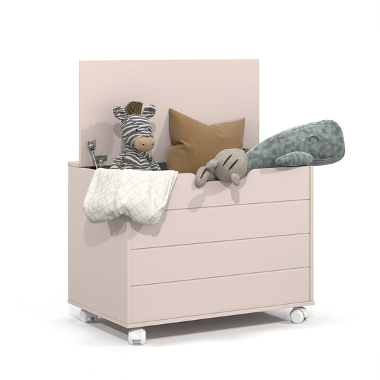 Juguetero en madera industrializada de pino con acabado de mayor calidad en pintura UV que mantiene la pintura intacta sin perder el color en el tiempo. Equipados con baúl de apertura suave, rodachines para fácil movilidad y esquinas redondeadas para seguridad. La solución perfecta para organizar los juguetes de tus pequeños con estilo y practicidad. Transporte y Armado gratis