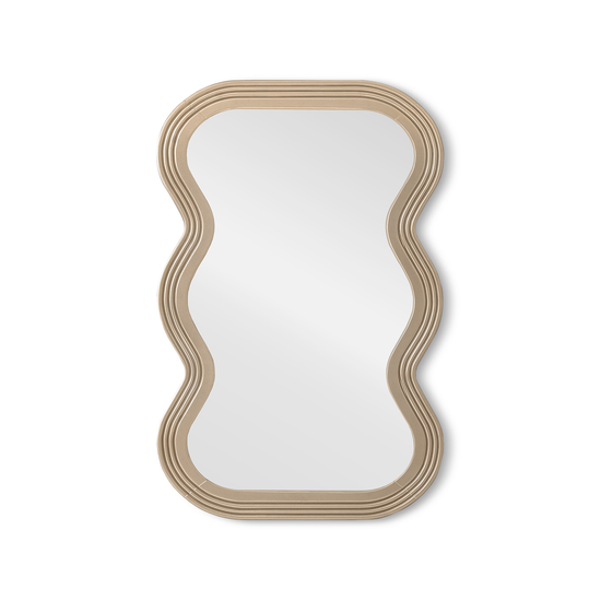 El Marco Espejo Oklam Champaña combina un encanto retro con un diseño moderno y divertido. Su distintivo marco ondulado, elaborado en madera con un acabado brillante en pintura de poliuretano, aporta personalidad y estilo a cualquier espacio. Su versatilidad permite colocarlo tanto en posición horizontal como vertical, adaptándose a diferentes ambientes y necesidades decorativas.