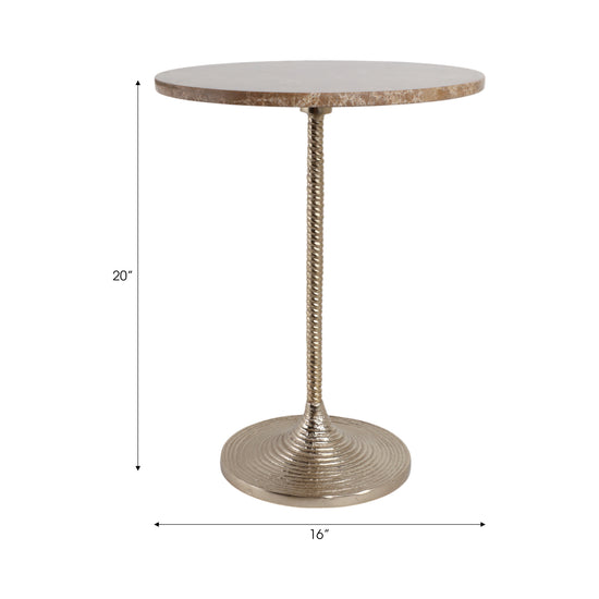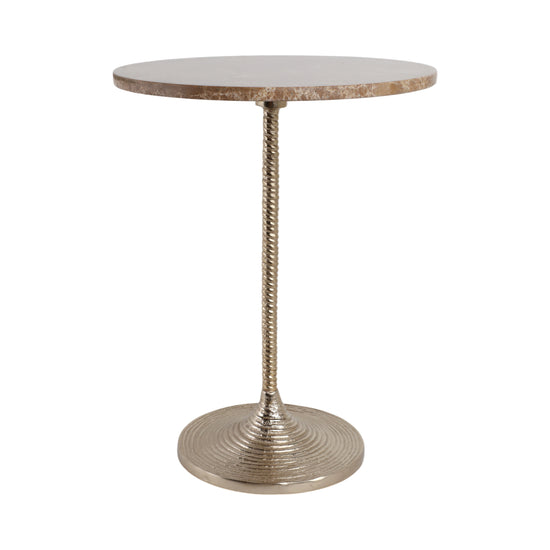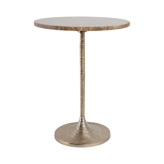 la Mesa Esquinera Eli Clara se adapta a cualquier espacio. Su acabado claro tipo mármol y base negra estilizada la hacen ideal para salas o habitaciones con estilo elegante y ligero.