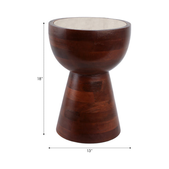 La Mesa Esquinera Emmi Café combina diseño minimalista y calidez visual. Su acabado en tono madera oscura y su estructura curvilínea aportan elegancia a cualquier espacio. Ideal como complemento junto a sofás o poltronas en ambientes modernos.