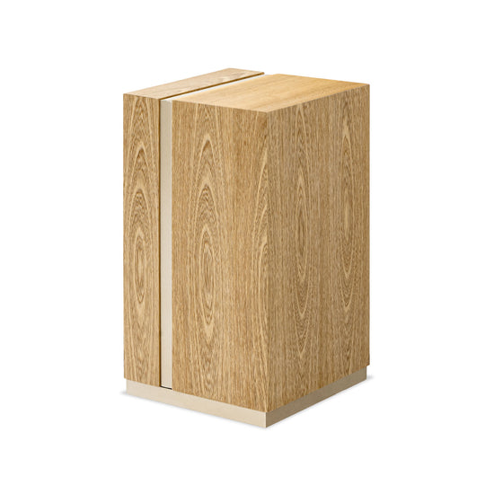 La Mesa Auxiliar Lizzi destaca por su diseño minimalista y refinado. Su acabado semimate con pintura poliuretano resalta la textura natural de la madera, mientras el detalle en tono champaña añade un sutil toque de sofisticación. Compacta y versátil, complementa perfectamente espacios modernos con elegancia y estilo.