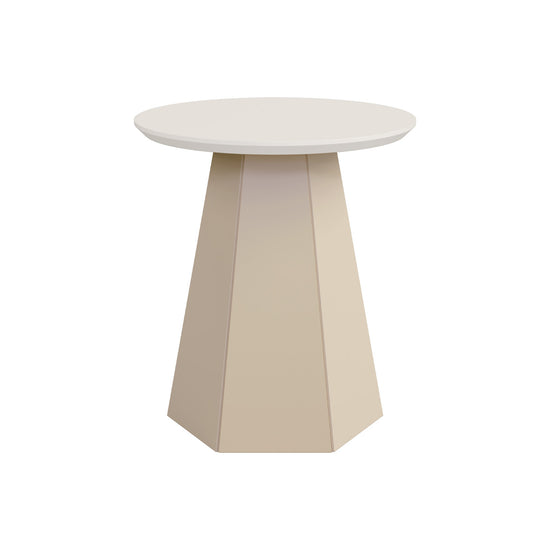 La Mesa Auxiliar Madeira en acabado Off White/Champaña. Su diseño elegante y moderno, con base geométrica distintiva, combina funcionalidad y estilo, convirtiéndose en el complemento ideal para realzar la decoración de tu sala.