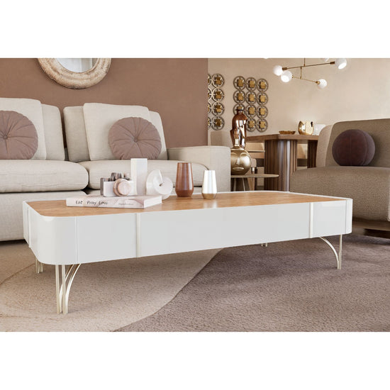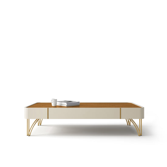 Mesa de centro elaborada en madera industrializada de pino (MDF/MDP), con pintura UV que garantiza su durabilidad y resistencia. Transforma tu sala de estar con nuestra elegante mesa de centro, diseñada para impresionar. Los detalles dorados en los laterales añaden un toque de lujo y estilo. Completada con patas de acero macizo dorado para una estabilidad y elegancia incomparables. ¡Haz de tu espacio de convivencia el centro de atención con esta mesa de centro que combina calidad y sofisticación!Transporte y armado gratis.