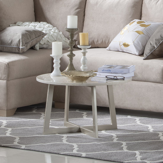 Siente la buena vibra de tu sala de estar con esta exquisita mesa de centro. De diseño circular, está elaborada en metal y presenta una elegante cubierta de mármol, que se adapta a la perfección a cualquier decoración moderna. Su sofisticado acabado añade un toque de distinción y modernidad a tu espacio.