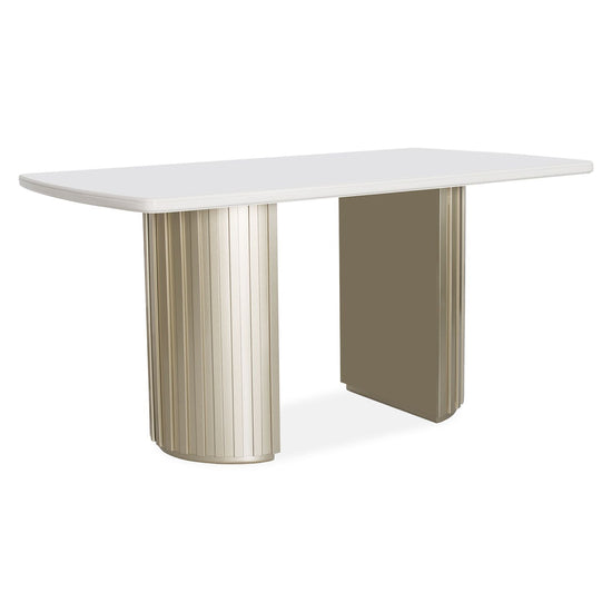 La mesa 6 Puestos Firence es una pieza protagonista en cualquier comedor moderno. Su base doble con detalles acanalados en acabado metálico aporta elegancia arquitectónica, mientras que su cubierta rectangular con pintura poliuretano garantiza una superficie resistente, duradera y fácil de limpiar.