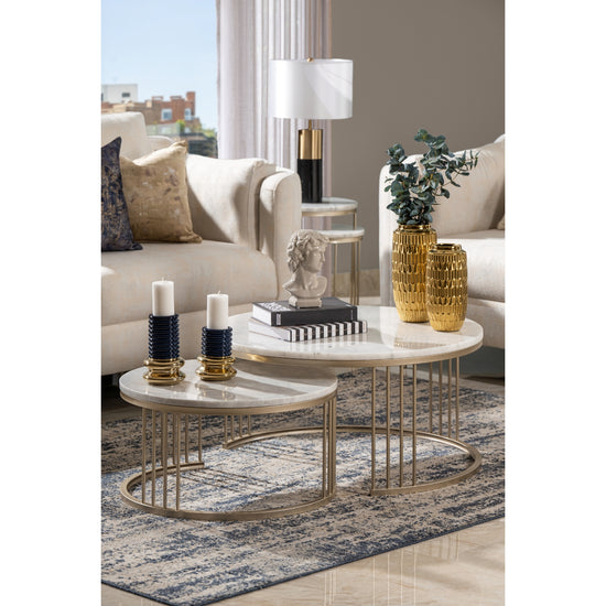 La Mesa De Centro 60 Owen Marmol, Champaña proyecta un estilo refinado y sofisticado, destacando una estética elegante. Su diseño moderno proporciona un amplio espacio para mostrar tus accesorios preferidos con estilo.