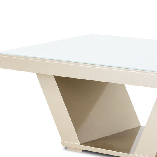 La mesa de centro Bulgary Champaña proyecta una estética de elegancia incomparables. Su cubierta, revestida con Tecnología ULTRAGLASS, no solo añade un toque de seguridad adicional al adherir el vidrio a la madera en caso de rotura, sino que también asegura una superficie siempre impecable. Resistente al calor y fácil de limpiar, esta mesa ofrece practicidad y durabilidad. Con su diseño exquisito y funcional, complementará cualquier espacio con su presencia. Con la mesa de centro, disfrutarás de la combinación perfecta entre estilo y funcionalidad para tu hogar.