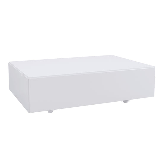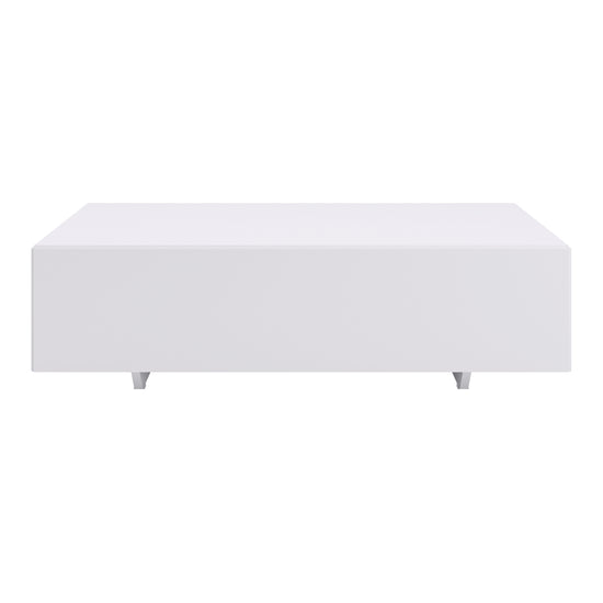 Mesa fabricada con tablero MDF de pino y tiene un acabado brillante en color blanco gracias a la pintura UV. El material es resistente a plagas y humedad, mientras que los deslizadores garantizan un movimiento suave. Sus dimensiones son de 92x62 cm. Además, ofrecemos transporte y armado gratuitos.