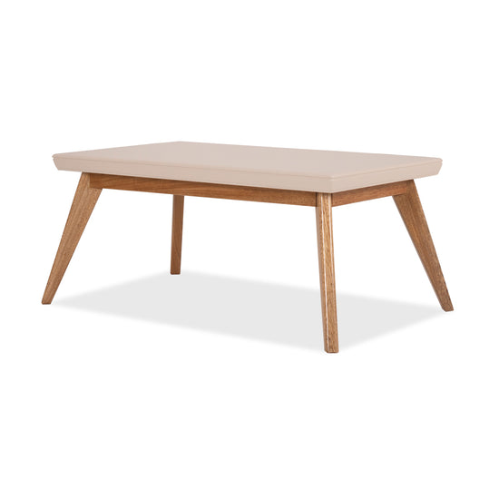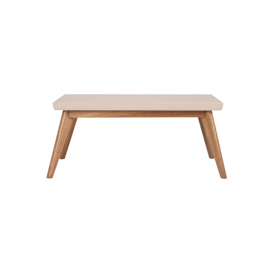 La mesa de centro Lee Off White, Natural Poliuretano está fabricada con materiales certificados para garantizar calidad, con una superficie que se mantiene fácilmente y un diseño exclusivo que resalta con sus patas de madera natural, aportando elegancia y durabilidad.