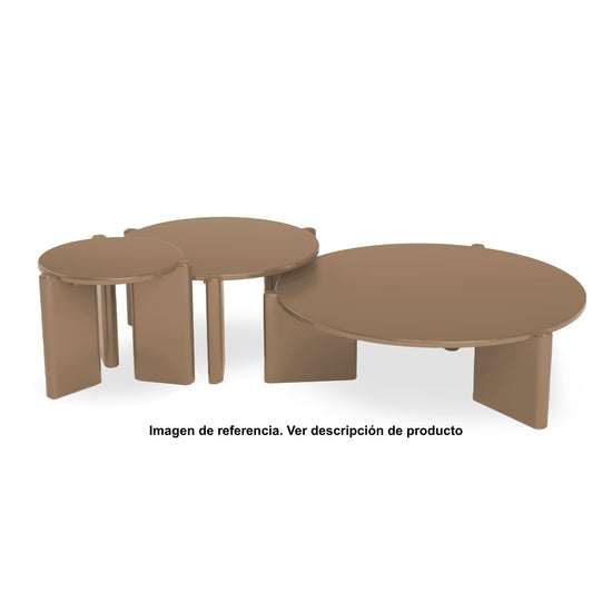 La mesa de centro Oklam fusiona diseño minimalista y materiales refinados en una pieza impactante. Su tablero redondo descansa sobre tres patas de madera, creando un equilibrio entre elegancia y estilo .