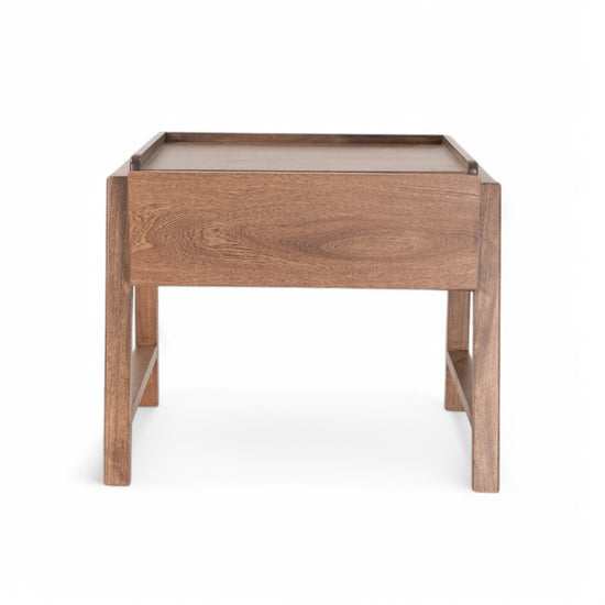 Añade un toque de elegancia y funcionalidad a tu habitación con esta mesa de noche de diseño contemporáneo. Fabricada en madera de alta calidad con un acabado oscuro, esta pieza combina modernidad y estilo clásico.