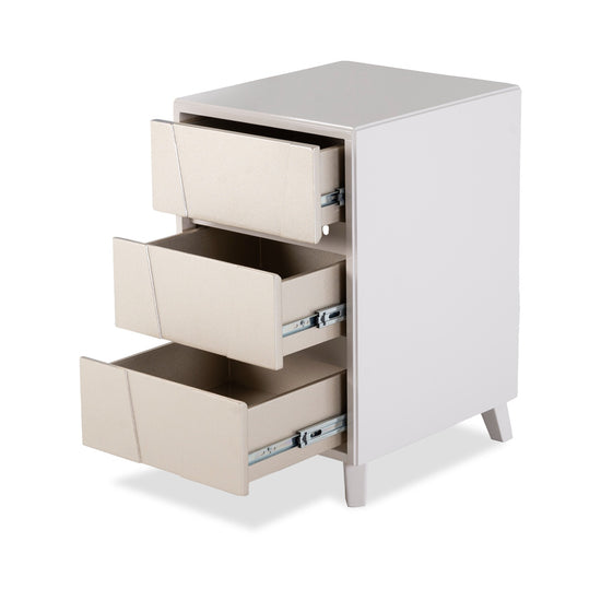 La mesa de noche Angello es la combinación perfecta entre estilo y practicidad. Su estructura con acabado en pintura poliuretano le otorga un brillo elegante y una mayor resistencia al uso diario. Con tres amplias gavetas, ofrece el espacio ideal para organizar y almacenar tus objetos personales, manteniendo tu habitación siempre ordenada y sofisticada.