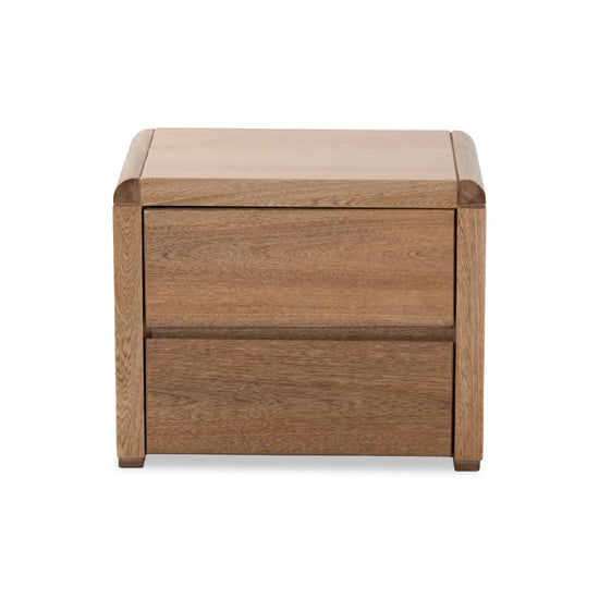 Descubre la belleza natural de nuestro nochero, elaborado con una estructura de madera de roble en color natural que resalta la elegante veta de la madera. Contiene dos gaveta ideal para mantener tus esenciales al alcance de la mano.