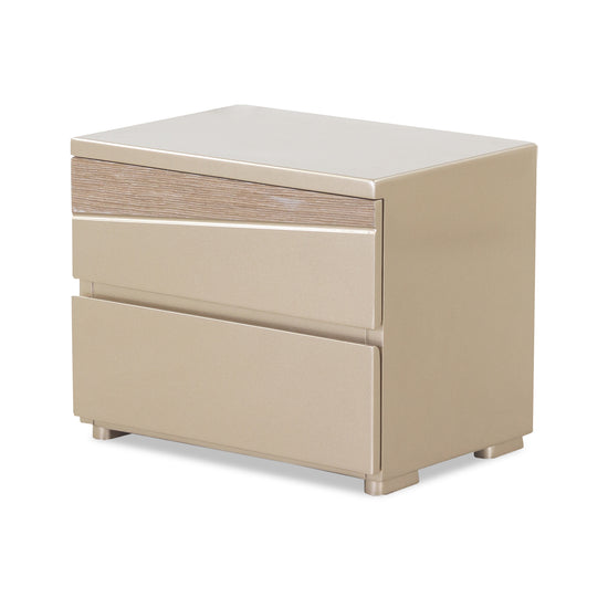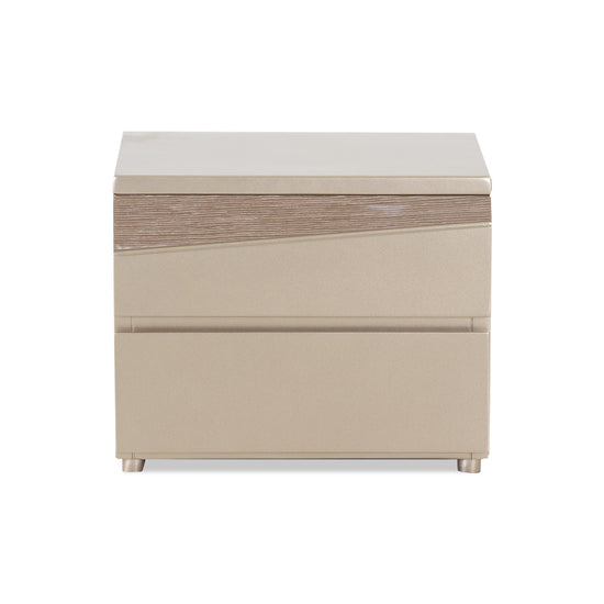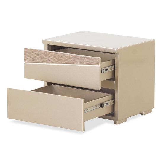 La Mesa de Noche Daytona Champaña, Catedral Otoño presenta un diseño sofisticado que añade un toque de elegancia al dormitorio con su hermoso acabado. Ofrece dos cajones espaciosos que proporcionan almacenamiento conveniente para los elementos esenciales junto a la cama.