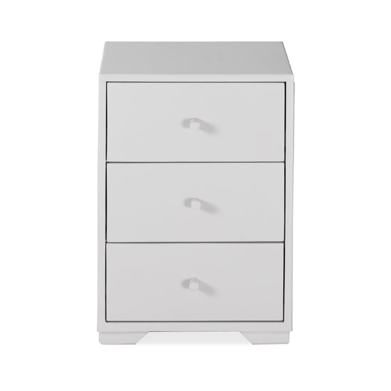 Transforma tu espacio con esta elegante mesa de noche de diseño moderno y acabado blanco. Perfecta para complementar cualquier estilo decorativo, esta mesa es la combinación ideal de funcionalidad y estilo. Tres cajones amplios perfectos para guardar libros, accesorios o cualquier objeto personal que desees mantener a la mano.