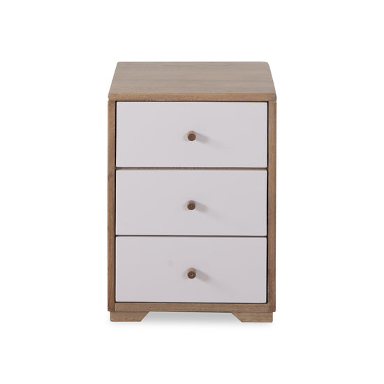 Mesa de Noche Delta con estructura elaborada en madera de roble, destacando la veta natural de la madera para añadir calidez a tu habitación. Con tres amplias gavetas te ofrece la solución perfecta para organizar tus objetos personales.