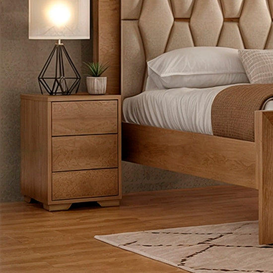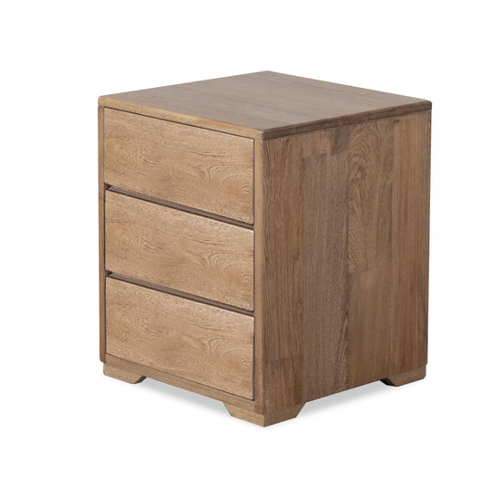Mesa de Noche Mila con estructura elaborada en madera roble, permitiendo apreciar las vetas naturales que le otorgan un carácter único y calido. Ideal para complementar cualquier dormitorio, esta Mesa de Noche no solo aporta estilo, sino también practicidad con su amplio espacio de almacenamiento.