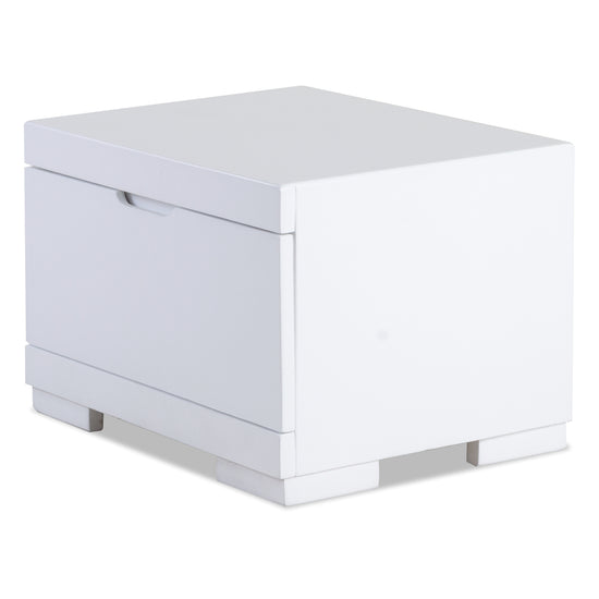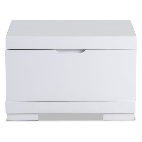 Nochero elaborado en madera de roble, pintura con alta conservación en el tiempo color Blanco, incluye una gaveta con rieles extesibles. Medidas: 39x50x35 cm.