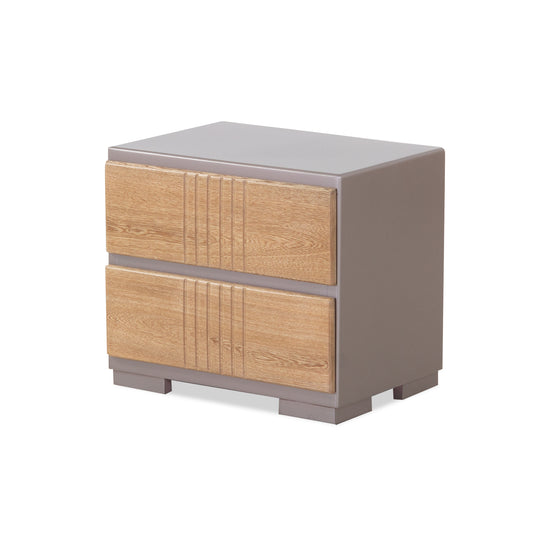 La Mesa de Noche Polonia Natural, Taupe Pequeño mejora la estética de tu dormitorio con un magnífico acabado. Su diseño exhibe una estructura de madera de roble visible, permitiendo apreciar la exquisita veta y la robustez del material, garantizando su longevidad. Además de su atractivo visual, cuenta con dos cajones que ofrecen espacio adicional para tus necesidades junto a la cama.