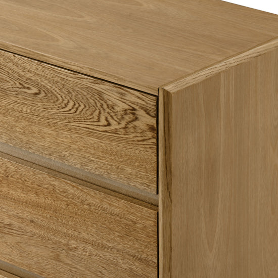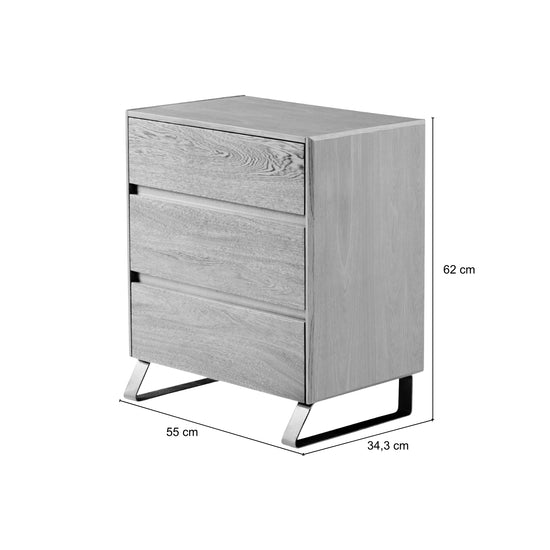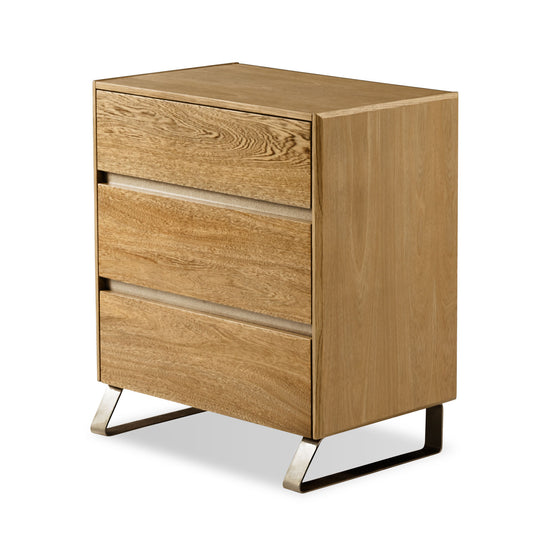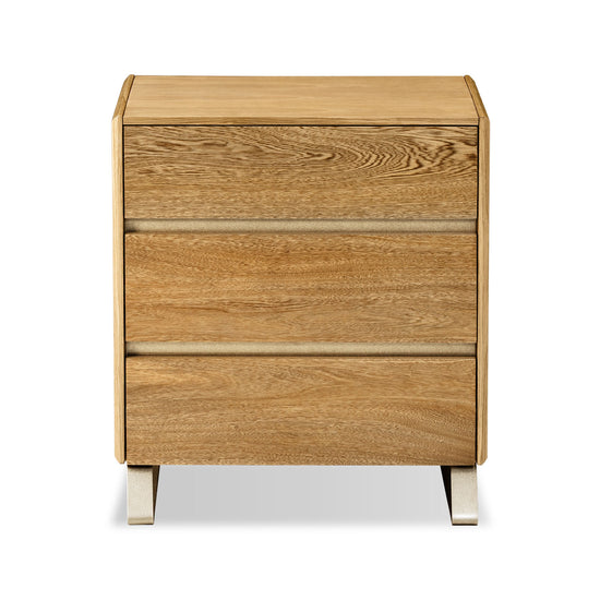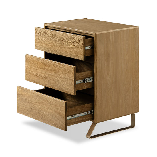 La Mesa de Noche Sevilla combina la calidez de la madera natural con detalles en champaña y patas metálicas. Sus tres gavetas brindan amplio espacio de almacenamiento, manteniendo todo en orden. Con un diseño moderno y elegante, es el complemento perfecto para tu habitación.