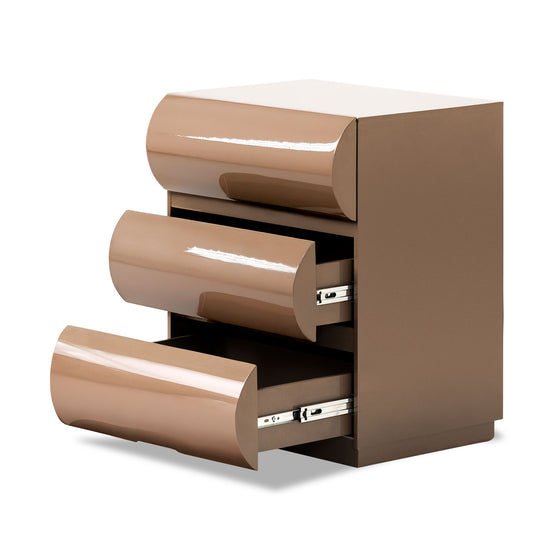 La Mesa de Noche Sienna de 3 gavetas en tono Capuchino es una pieza distintiva que combina sofisticación y funcionalidad. Su diseño envolvente con líneas curvilíneas aporta un estilo bold y contemporáneo, mientras que sus tres gavetas ofrecen un amplio espacio de almacenamiento para mantener el dormitorio organizado. Su acabado en Capuchino intensifica la calidez y profundidad del diseño, convirtiéndola en una elección ideal para quienes buscan una mesa de noche con carácter y elegancia.