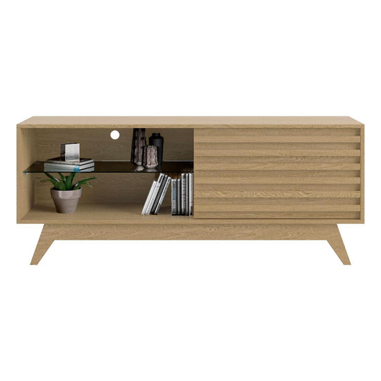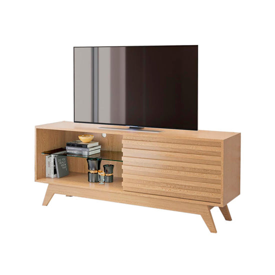 Mesa de TV elaborada en madera industrializada de Pino (MDF/MDP) y acabado en pintura UV que garantiza su durabilidad y resistencia, Si buscas una solución moderna y elegante para tu sala de estar, esta mesa de TV es perfecta para ti. Cuenta con repisa de vidrio templado que añade un toque de elegancia y modernidad al diseño de la mesa. Ideal para colocar tus dispositivos multimedia, como reproductores de DVD, consolas de videojuegos o decodificadores de TV por cable. Espacio para el televisor es de hasta 55''.