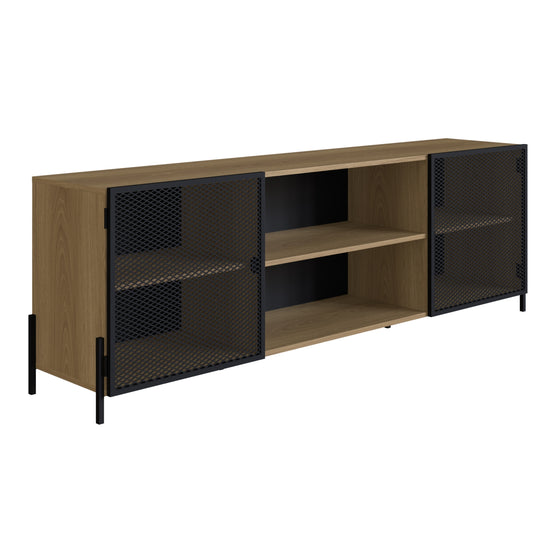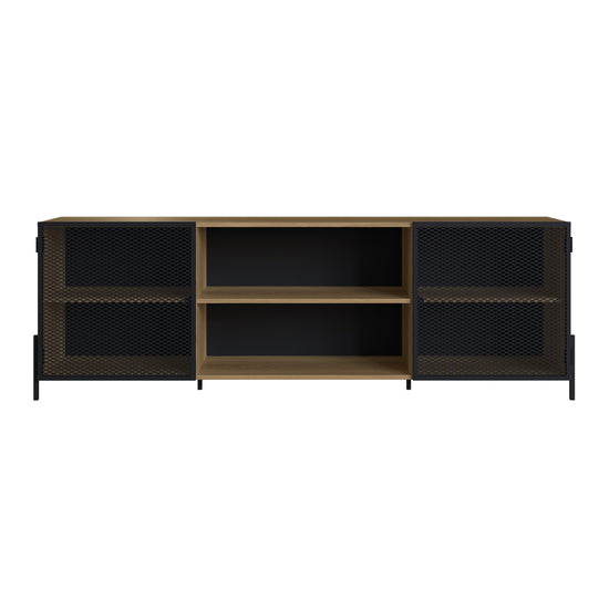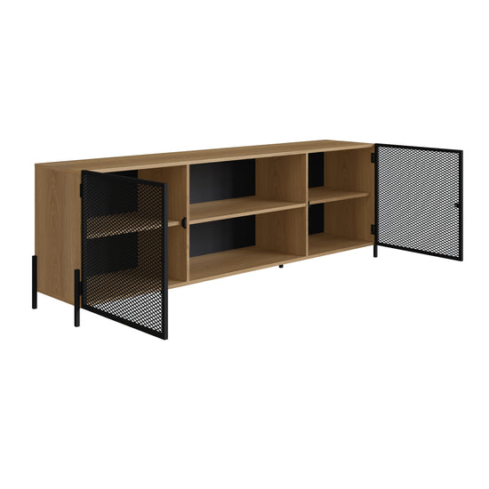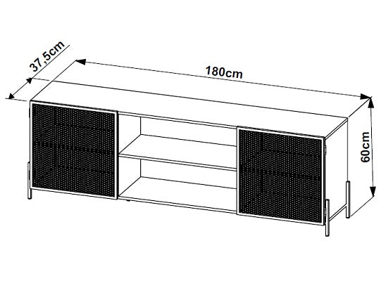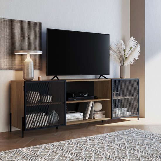 Si buscas una mesa de TV duradera, práctica y con estilo, esta mesa elaborada en madera industrializada de pino con detalles de malla metálica es la elección perfecta para ti. Además, ofrece un amplio espacio de almacenamiento que te permite organizar dispositivos electrónicos, juegos de consola, libros, revistas y otros elementos esenciales para tu sala de estar, combinando funcionalidad y estética de manera excepcional.