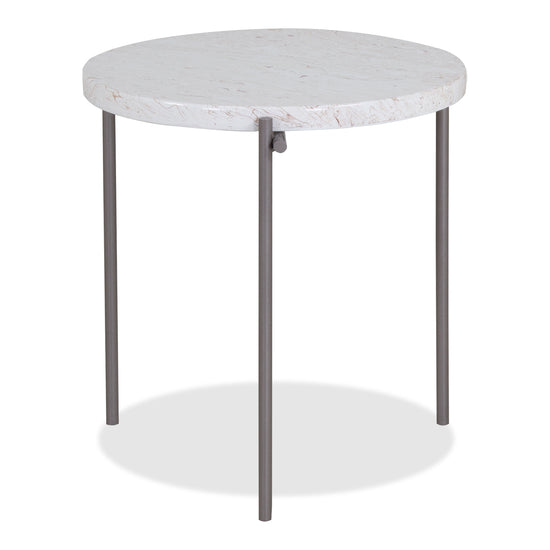 Mesa decorativa circular con estructura elaborada en metal con cubierta en madera industrial. Define un estilo moderno con buen espacio para exhibir tus accesorios favoritos.