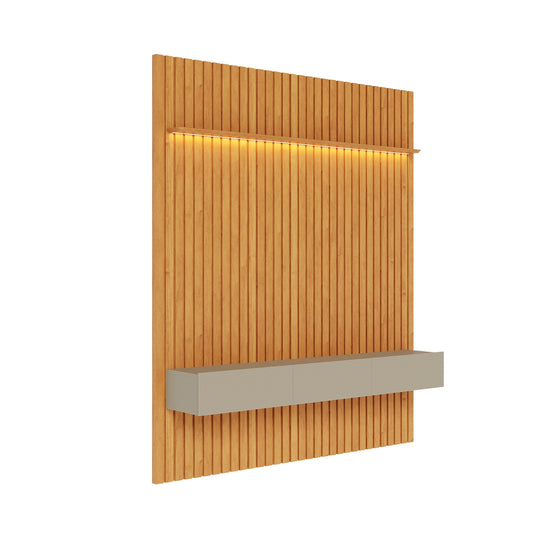 Panel de TV elaborado en madera industrializada de pino (MDF/MDP), con una pintura UV que garantiza su durabilidad y resistencia. Su diseño parrillado añade un toque contemporáneo y atractivo, convirtiéndolo en un punto central destacado en tu sala de estar. Además, cuenta con repisa superior que brinda espacio para exhibir objetos decorativos, fotografías u otros elementos que desees destacar, añadiendo un toque personalizado a tu espacio. Incluye un mueble flotante con 2 gavetas equipadas con riel telescópico, ideal para organizar tus accesorios multimedia y otros elementos. Con capacidad para televisores de hasta 65 pulgadas, este panel incluye un soporte para TV que asegura una instalación segura y estable. Además, cuenta con luz LED para crear un ambiente acogedor y moderno. Transporte y armado gratis.
