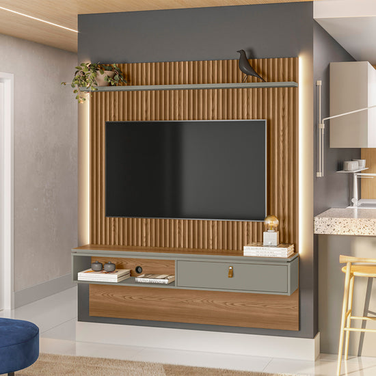 Panel de TV elaborado en madera industrializada de pino, complementada con una pintura UV que garantiza su durabilidad y resistencia. Su diseño parrillado añade un toque contemporáneo y atractivo, convirtiéndolo en un punto central destacado en tu sala de estar. Además, ofrece una amplia repisa superior que brinda espacio para exhibir objetos decorativos, fotografías u otros elementos que desees destacar, añadiendo un toque personalizado a tu espacio. Con capacidad para televisores de hasta 65 pulgadas, este panel incluye un soporte para TV que asegura una instalación segura y estable. Además, cuenta con luz LED en las esquinas para crear un ambiente acogedor y moderno. Transporte y armado gratis