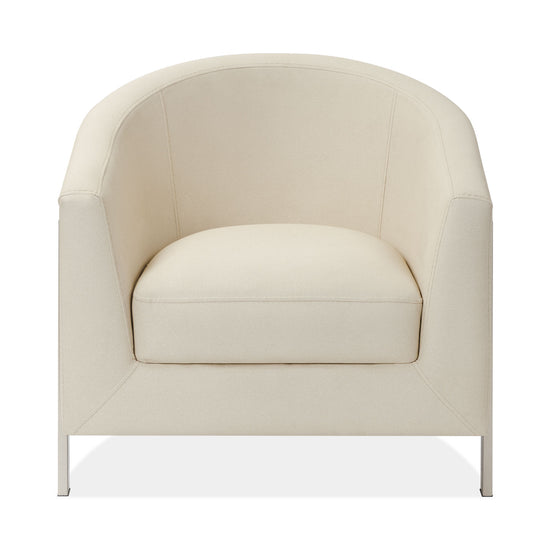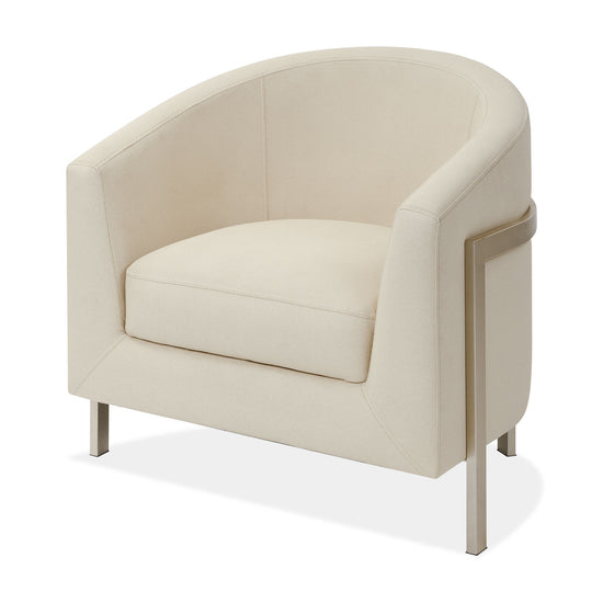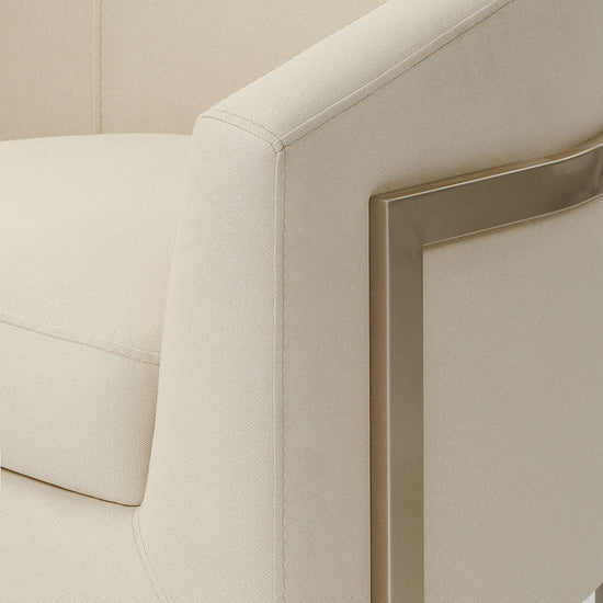 Poltrona Berlín Velvet en tono marfil, con un diseño contemporáneo que ofrece un amplio y profundo asiento, respaldo ajustado y base de acero con un elegante acabado en champaña. Lo que necesitas para incorporar en tu sala de estar o dormitorio.