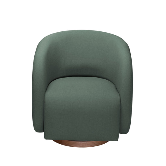 La Poltrona Emilly Giratoria Eurolino Vertigo Verde, Natural tiene un diseño envolvente con asiento amplio y base giratoria estable para comodidad total. Tapizada en tela Eurolino Vertigo, una tela suave al tacto, resistente al uso diario y anti líquidos. El tono verde aporta frescura y estilo. Ideal para sala, estudio o dormitorio; combina fácil con madera clara, fibras naturales y metal.