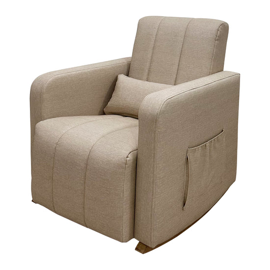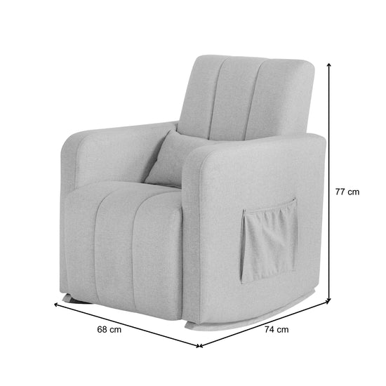 Descubre el placer del descanso con la Poltrona Mecedora Clio Eurolino Marfil. Tapizada en Eurolino de alta durabilidad, esta butaca combina estilo y funcionalidad. Su suave balanceo genera una sensación de calma, ideal para leer, relajarte o cuidar a tu bebé. Su bolsillo lateral es perfecto para guardar objetos personales. Una poltrona pensada para transformar cualquier rincón en un refugio de paz.