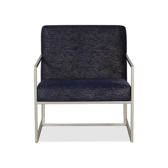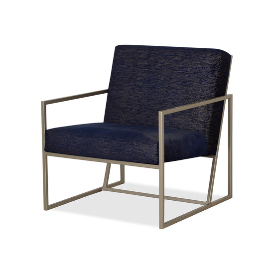 Poltrona estilo moderno de asiento cómodo, amplio y profundo con base elaborada en acero en acabado champaña. Diseñada para su sala de estar o dormitorio.
