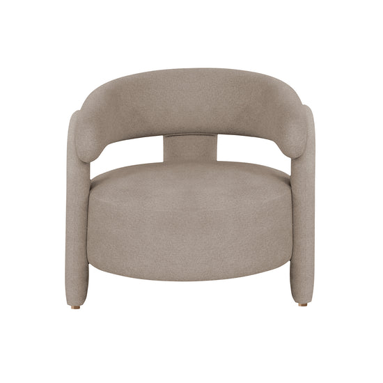 La Poltrona Santy tapizada en velvet taupe con base natural ofrece elegancia y comodidad. Su diseño moderno y curvo la convierte en el complemento ideal para realzar tus espacios con un estilo sofisticado.