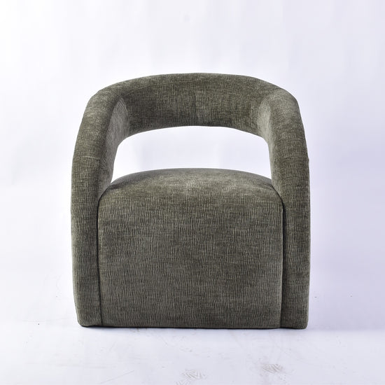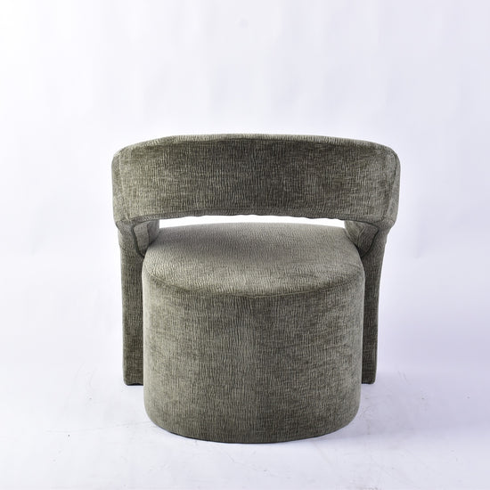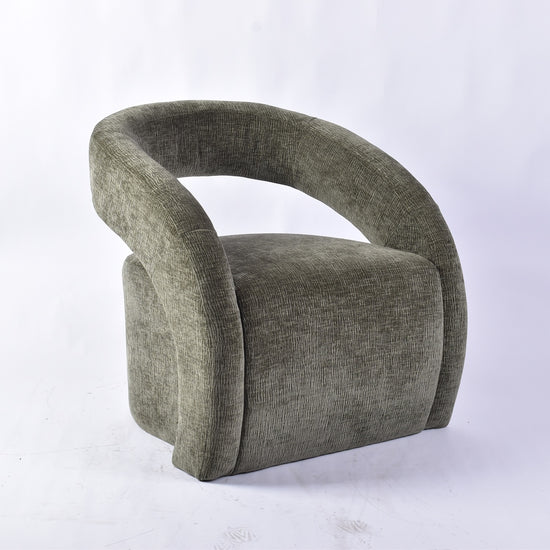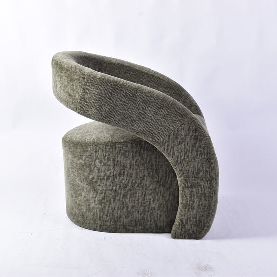 La Poltrona Thiara Verde aporta elegancia y confort con su diseño envolvente y líneas curvas. Su tapizado en tono café cálido y base ancha la convierten en el acento ideal para salas modernas o rincones de descanso llenos de estilo.
