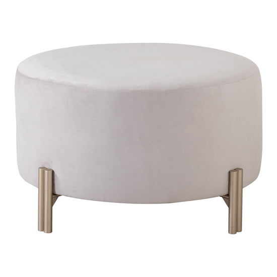 Puff circular, tapizado en tela suave al tacto, pet friendly, estructura en madera solida de roble y pino, espumas de alta densidad. Zócalo metálico pintado en electroestatica que otorga resistencia ante factores ambientales