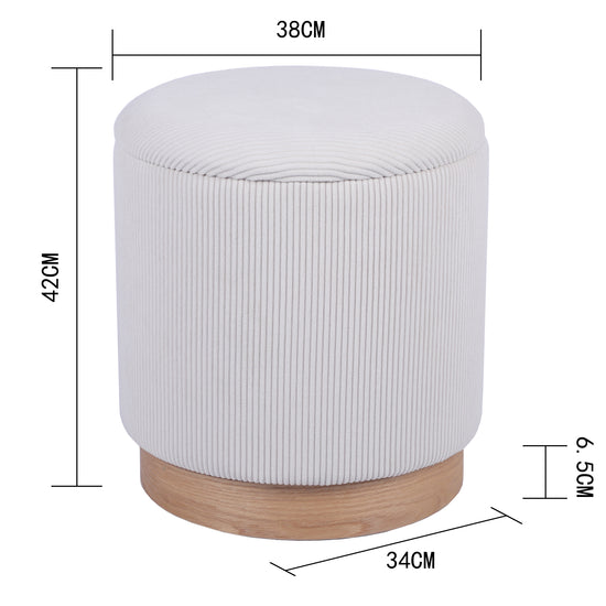 El Puff Canadá Crema es el complemento perfecto para ambientes acogedores y modernos. Tapizado en suave tela pana acanalada y con base en madera industrializada de pino, ofrece un diseño elegante, funcional y cálido. Su estructura cilíndrica con tapa removible permite almacenamiento oculto. Ideal para salas, habitaciones o entradas con estilo y practicidad.