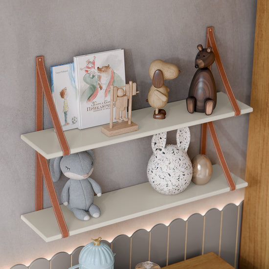 Repisa en Madera industrializada de Pino (MDF) con acabados de mayor calidad en pintura UV que mantiene la pintura intacta sin perder el color en el tiempo, cuenta con soportes en ecocuero que le dan un diseño de versátil y moderno, esta repisa es ideal para exhibir tu accesorios de docoracion añadiendo un toque especial tu hogar.