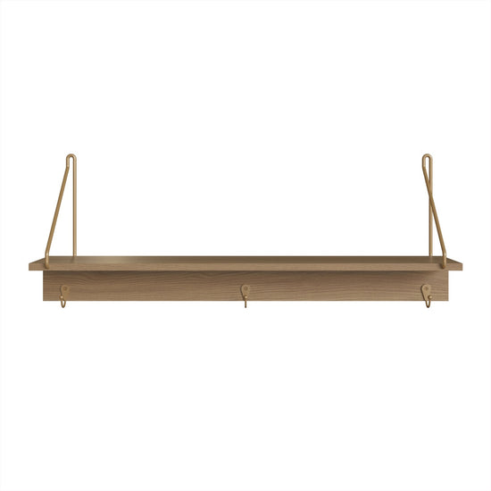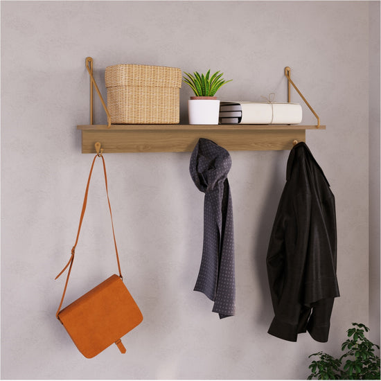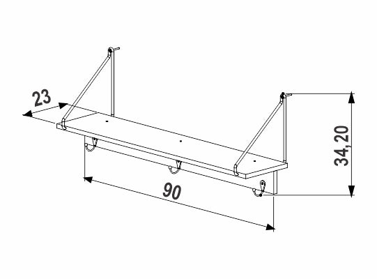 Repisa elaborada en madera industrializada de pino MDF y acabado BP que garantiza su durabilidad y resistencia. Maximiza el espacio de almacenamiento y realza la decoración de cualquier habitación al exhibir tus objetos favoritos con estilo. La repisa cuenta con 15mm de espesor, y su estructura metálica es redonda, con un diámetro de 8mm y ganchos acabados con pintura epoxi negra. Soporta un peso total de 10 kg (7 kg en la repisa y 1 kg en cada gancho).