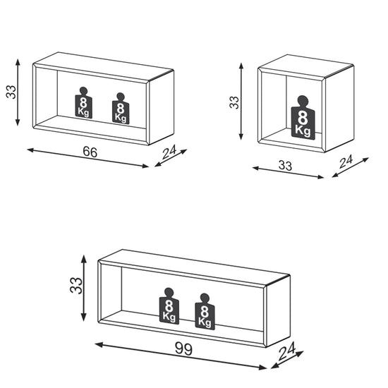 Repisas elaborada en Madera industrializada de pino con acabados de mayor calidad en pintura UV que mantiene la pintura intacta sin perder el color en el tiempo. Ideal para organizar y decorar tus espacios en el estudio, la sala y otros espacios sociales. Tiene un diseño que puedes combinar con otros elementos decorativos, fácil de limpiar y de instalar. Incluye 3 repisas 33x33x24 / 66x33x24 /99x33x24