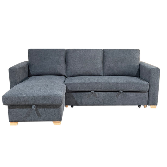 Convierte tu sala en un espacio multifuncional con la elegante Sala Cama Omma color plomo. Su diseño moderno con líneas rectas y cojines generosos brinda estilo y confort. Incluye módulo lateral de descanso con lados intercambiables (izquierdo o derecho) y compartimiento de almacenamiento oculto, ideal para mantener todo en orden.