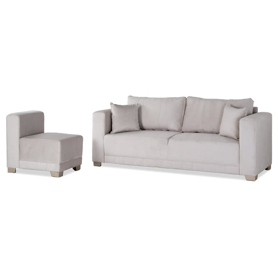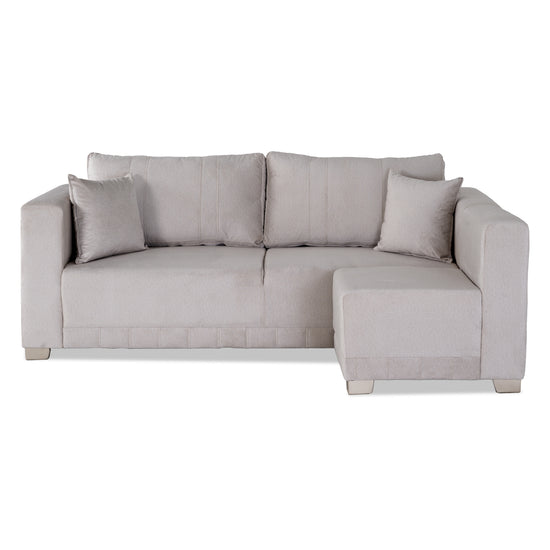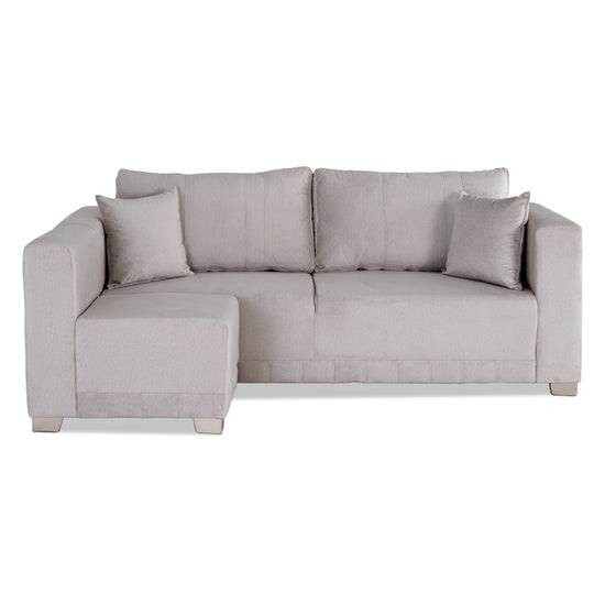La Sala Funcional Andora en Velvet Suprema sand eleva el confort con su textura aterciopelada y suave al tacto. Su diseño moderno incluye chaise para mayor descanso y brazos desmontables que facilitan su adaptación en distintos espacios. Con patas en acabado champaña, combina elegancia, practicidad y versatilidad para tu sala.