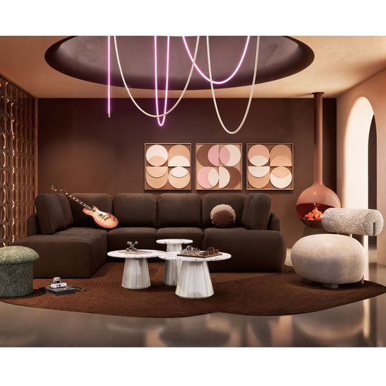 La Sala Funcional Fray Velvet Chocolate combina sofisticación y comodidad en una pieza de alto impacto visual. Su tapizado en tela velvet, suave y amigable con las mascotas, aporta textura y elegancia. Diseñada con líneas orgánicas, es perfecta para espacios amplios