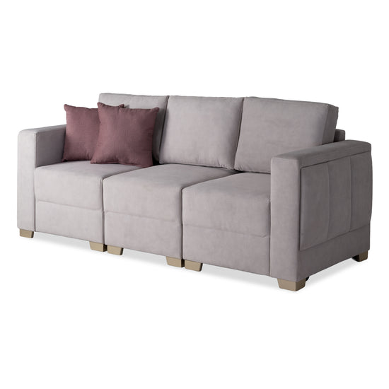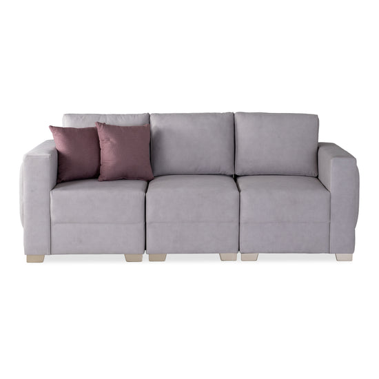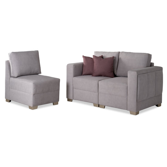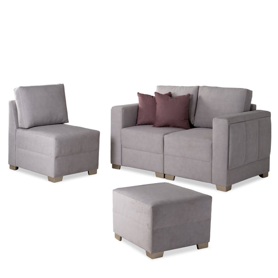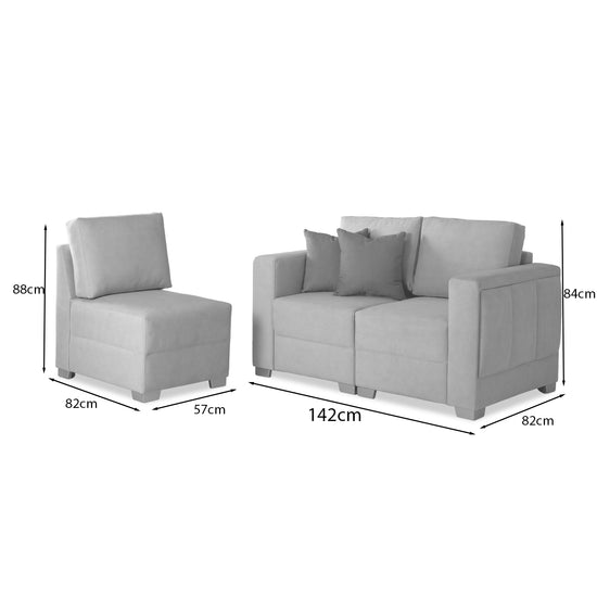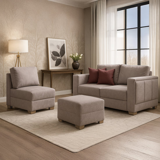 Transforma tu espacio con la sala Kenni, una solución funcional y elegante que se adapta a tus necesidades. Su diseño modular permite configurar los asientos a tu gusto, creando desde un sofá amplio hasta composiciones con silla y puff. Tapizada en una tela suave al tacto, ofrece una experiencia de confort total, ideal para compartir en familia o relajarte a solas. Sus líneas limpias, tonos neutros y cojines decorativos en contraste aportan un toque moderno y acogedor a cualquier ambiente.