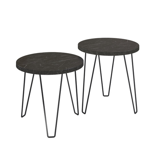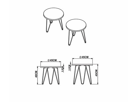 Set de mesas decorativas elaborada en MDP de pino de 15mm. Revestimiento melamínico maderado texturizado, resistente a rayas y humedad. Estructura metálica de acero de 15x15mm, acabado en pintura epóxi.Medida mesa grande: 45x45x45 cm (AnchoxAltoxProfundo). Medida mesa Pequeña: 45x40x45 cm (AnchoxAltoxProfundo). Requiere servicio de armado. Transporte y armado gratis.