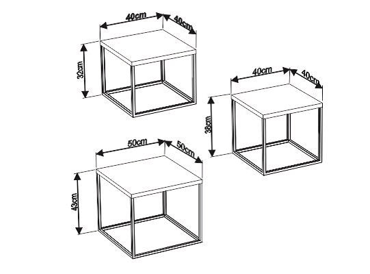 Set de mesas decorativas elaboradas en MDF con pintura UV, acabado mate color Negro, estructura en acero tubular con pintura epoxi color Negro. Incluye 3 mesas.