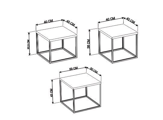 Set de mesas decorativas elaboradas en tablero de MDP de pino con acabados de mayor calidad en UV que mantiene la pintura intacta sin perder el color en el tiempo, mesas de centro perfectas por su combinación de materiales que dará a tus espacios un toque de elegancia y modernidad. Incluye 3 mesas. Mesa grande:50x43x50 Mesa Mediana:40x38x40 Mesa Pequeña:40x32,5x40 (AnchoxAltoxProfundo) cm *Transporte y armado gratis.