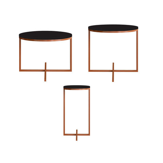Set de mesas decorativas elaboradas en tablero de MDP de pino con acabados de mayor calidad en UV que mantiene la pintura intacta sin perder el color en el tiempo, mesas de centro perfectas por su combinación de materiales que dará a tus espacios un toque de elegancia y modernidad. Incluye 3 mesas. Mesa grande:30x56x30 Mesa Mediana:50x46x50 Mesa Pequeña:50x36x50 (AnchoxAltoxProfundo) cm *Transporte y armado gratis.